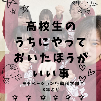 高校生は進路選びで今たくさん悩んで辛かったり苦しかったりすると思うけど、その辛さも今しか味わえないから、楽しんで後悔のない選択を!