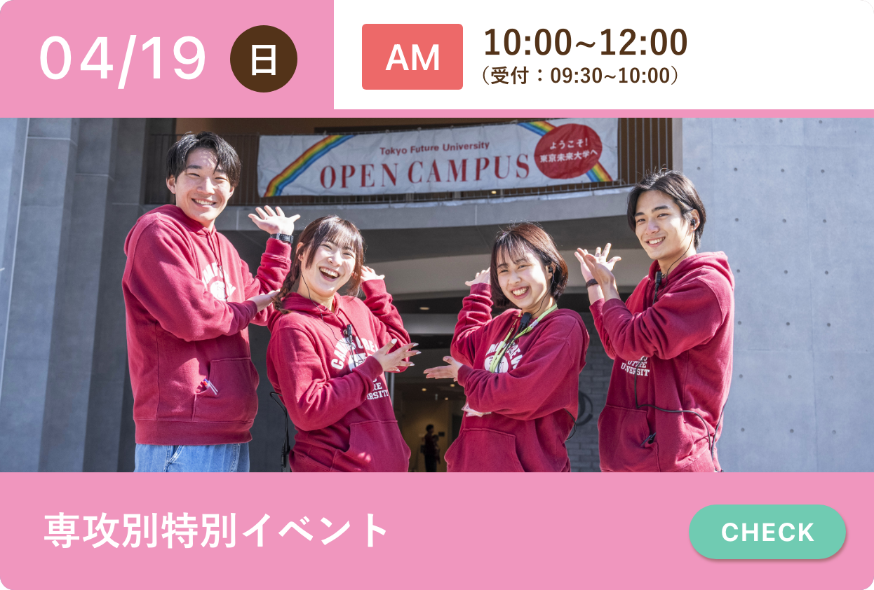 東京未来大学ならではの特徴やサポート制度はもちろん、各学部・専攻で学べる内容や取得可能な資格、就職先などキャンパスクルーの実体験をまじえながら説明します。