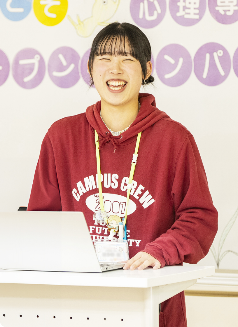 他の学校を5校以上見学したものの進学先に迷っている時に、未来大のことを知りました。学生自ら全てのプログラムを運営していたので、主体性を尊重しているように感じました。自分も未来大なら充実した大学生活に送れると確信できた瞬間でした。