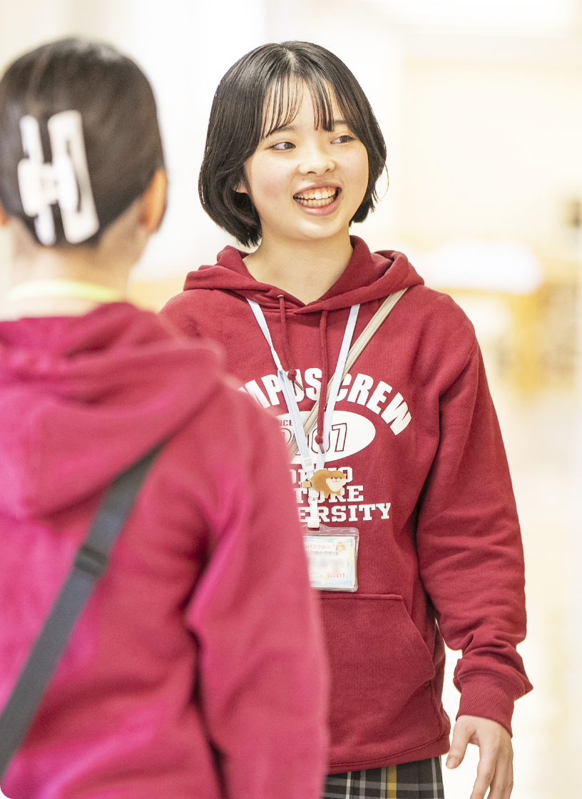 はじめて参加した時はとても緊張しましたが、キャンパスクルーの方が声をかけてくださり、緊張や不安がなくなりました。大学は大変というイメージがありましたが、先輩の様子を見て印象が変わりました。自分の話を肯定してくれたのも嬉しかったです。