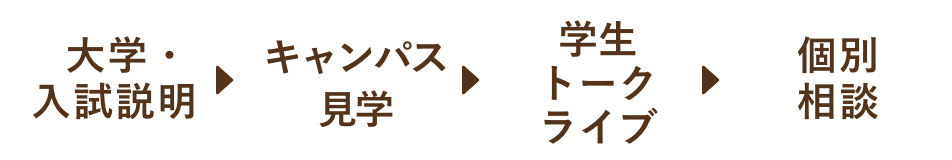 オープンキャンパスを踏まえてより詳しく聞きたいことや、入試に関する相談など、なんでもゆっくり質問・相談ができます。