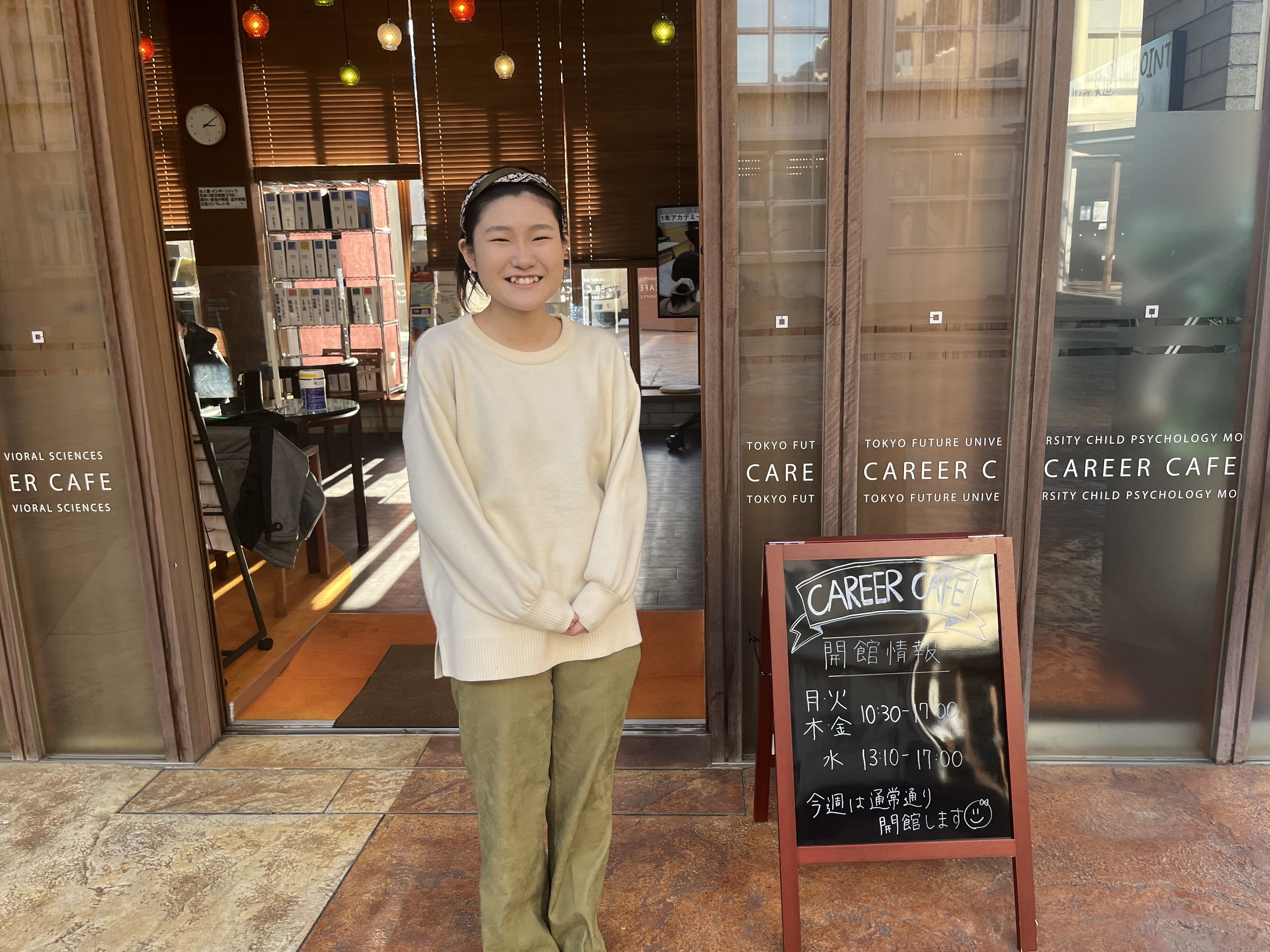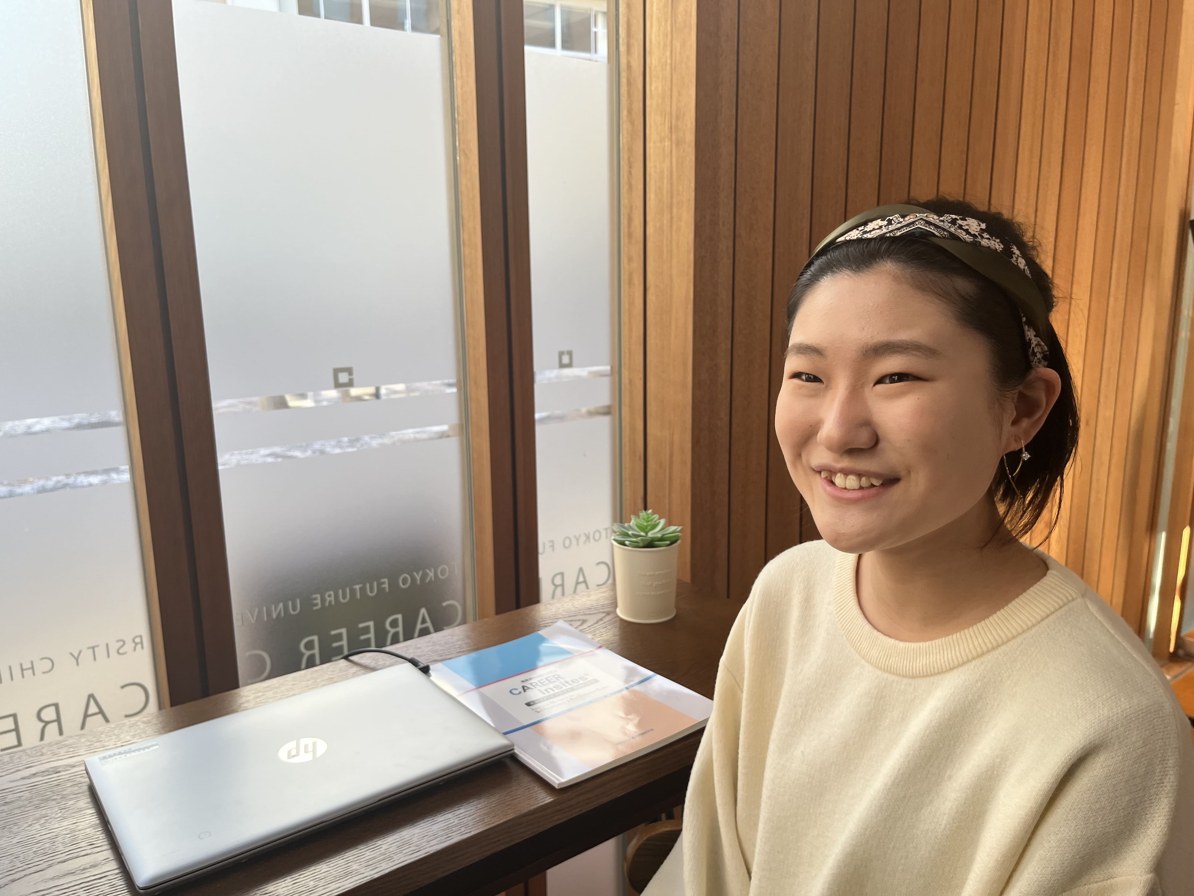 今後も委員会活動やキャリアイベントなど学生のうちにできることに自発的に参加していきたいです。高校生の時は引っ込み思案だったんですが、社会人になるとそうも言ってられないし、将来やりたいことが見つかっても自信が無いと行動できないと思うので。今気になっているのは未来大就活アカデミーです。2年生からでも参加できると聞いたので、応募してみようと思ってます!
