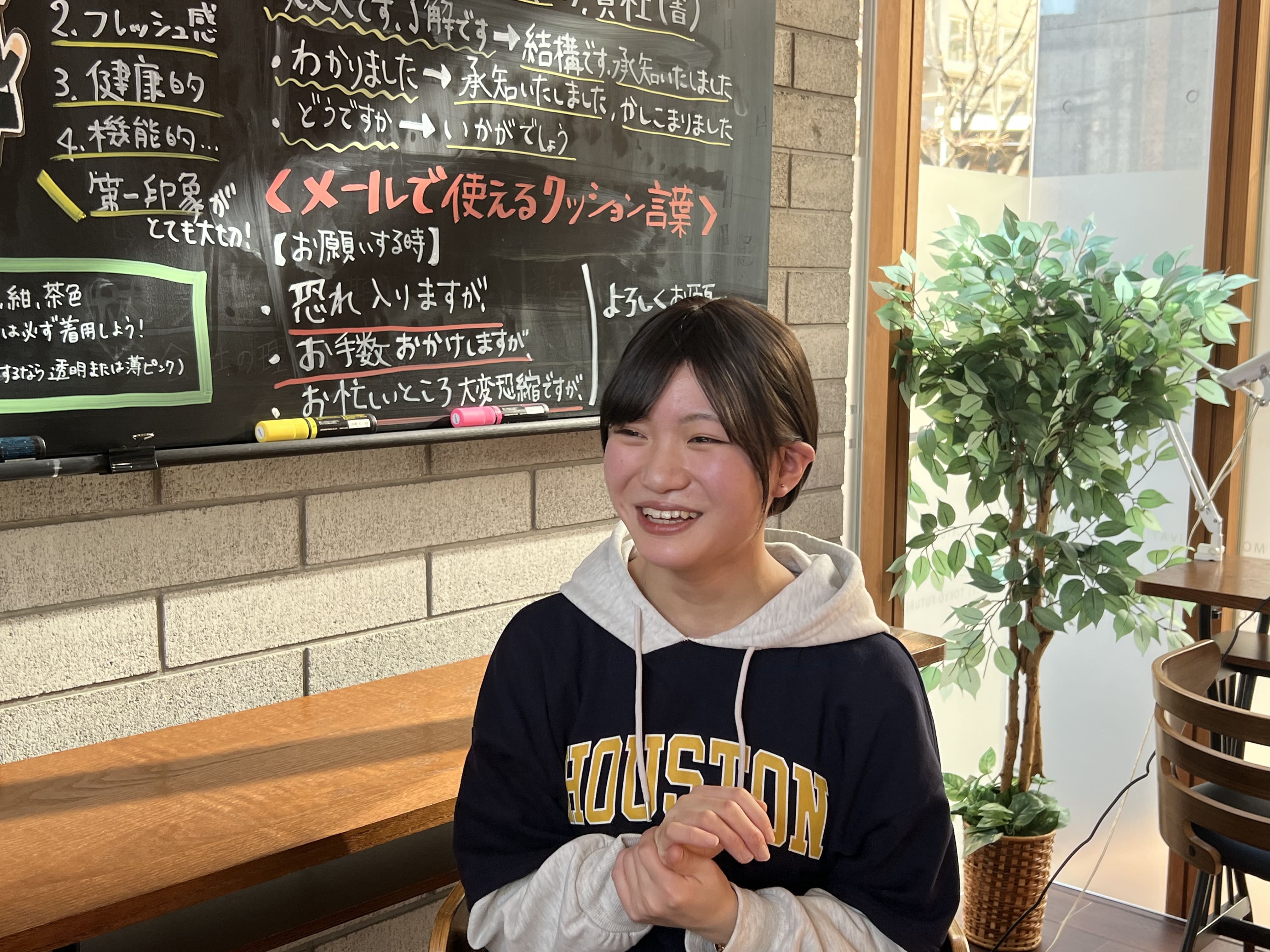 高3で進路を考えたときに、専門職ではなくて一般企業に就職しようと思ったんです。でも企業のことを知らないし、やっぱり一人だとなかなか活動できないから、活動ができる環境にいたいなって。あと1年生から準備したら辛くなった時に休むこともできるし、自分の弱いところを直したりする時間もあるしいいなって思ったんです。