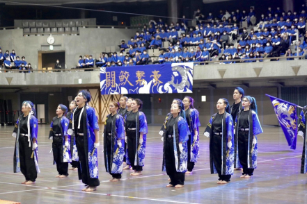 応援団では、競技中の応援や団の演舞を披露した。他にも、団の出展の手伝いを行い、団結 力を高めていった。週に2回の練習の中では、トレーニングや演舞の振り入れを行い、1から物 事を作り上げていく経験をした。
