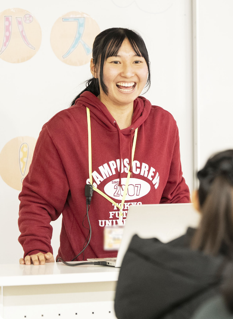 東京未来大学ならではの特徴やサポート制度はもちろん、各学部・専攻で学べる内容や取得可能な資格、就職先などキャンパスクルーの実体験をまじえながら説明します。