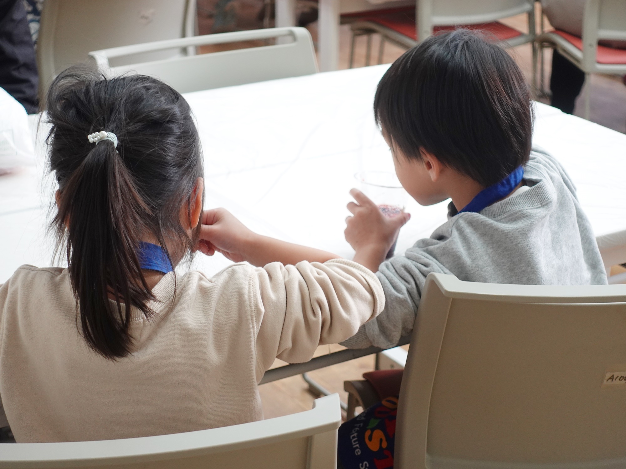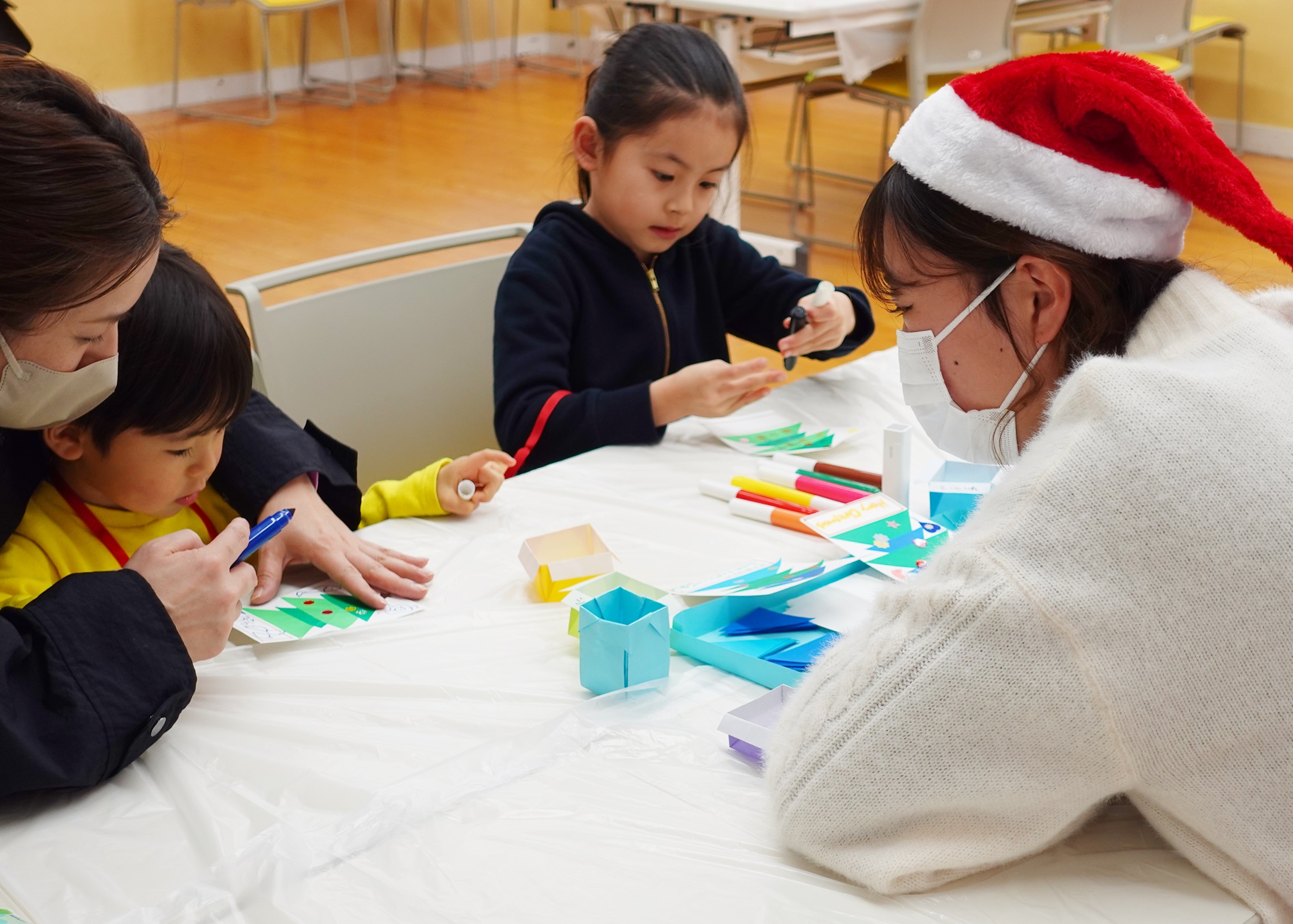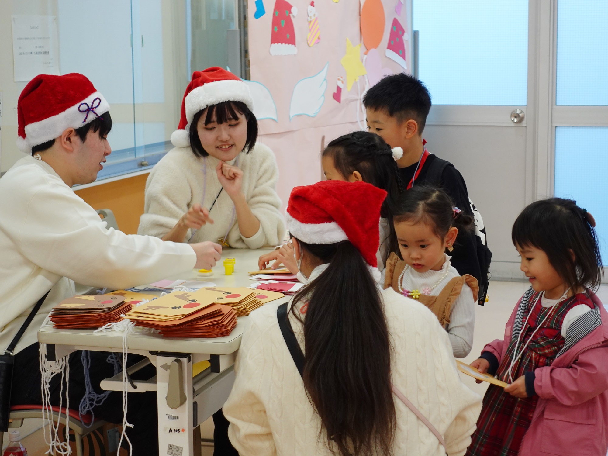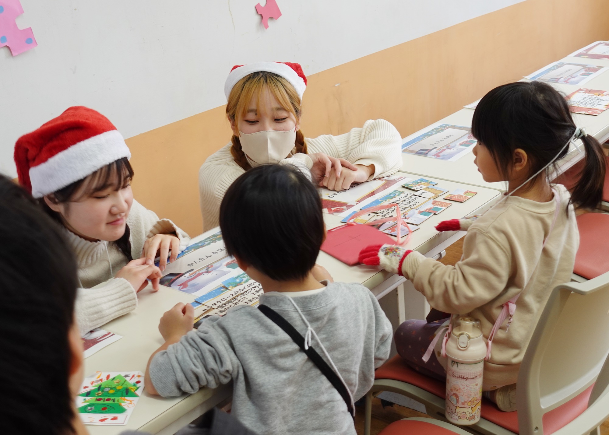 頑張って製作に取り組む子どもたちに、学生たちが優しく寄り添いました。