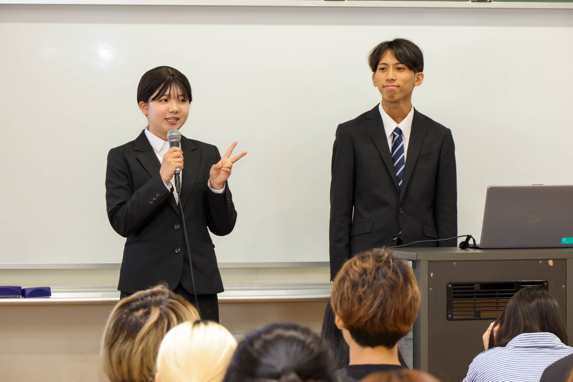 大勢の学生や教員の前での発表なので緊張感たっぷりです。