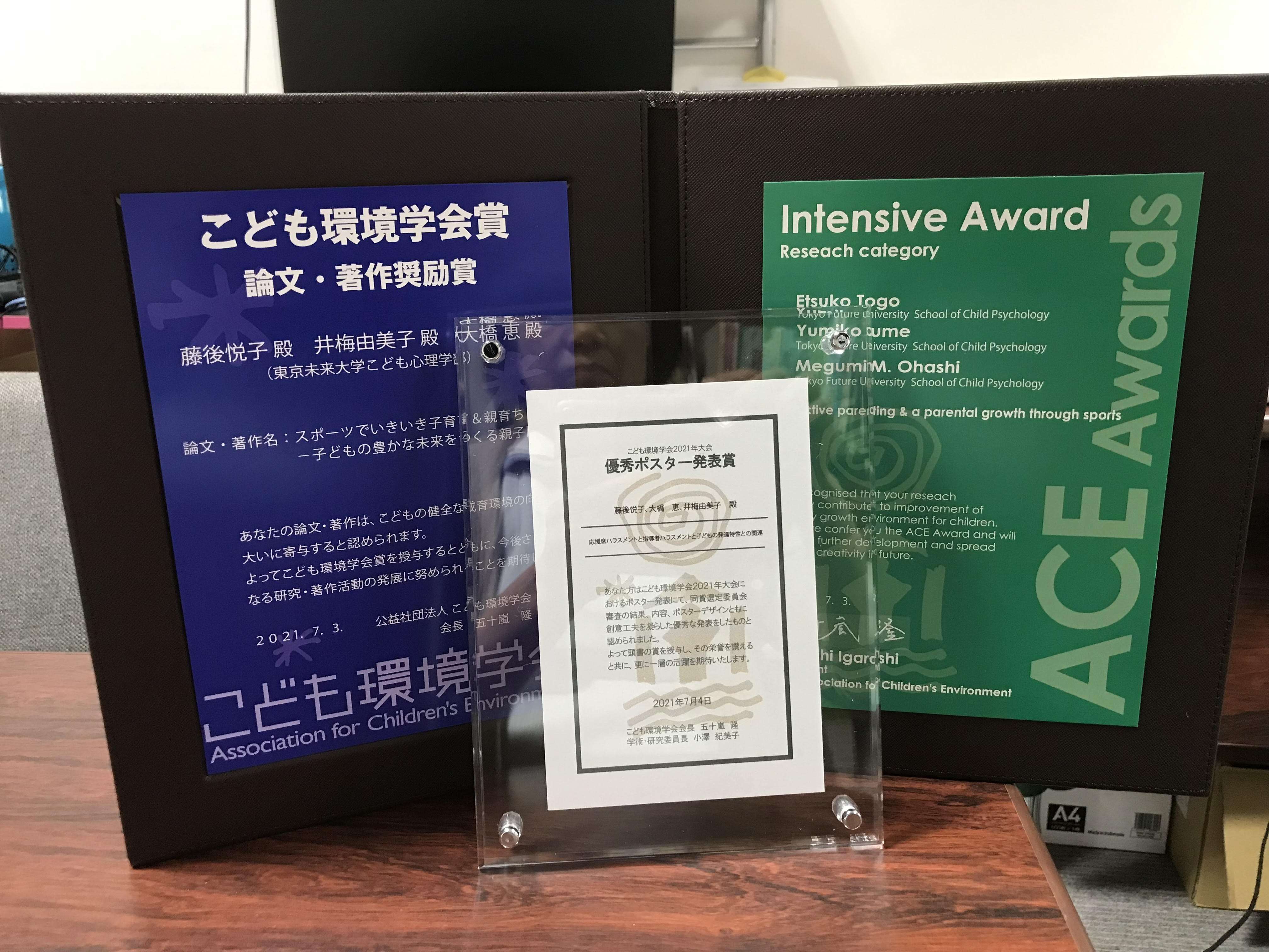 本学こども心理学部の藤後悦子教授・大橋恵教授・井梅由美子准教授が、こども環境学会2021年大会(長野)において以下の2つの賞を表彰されました。