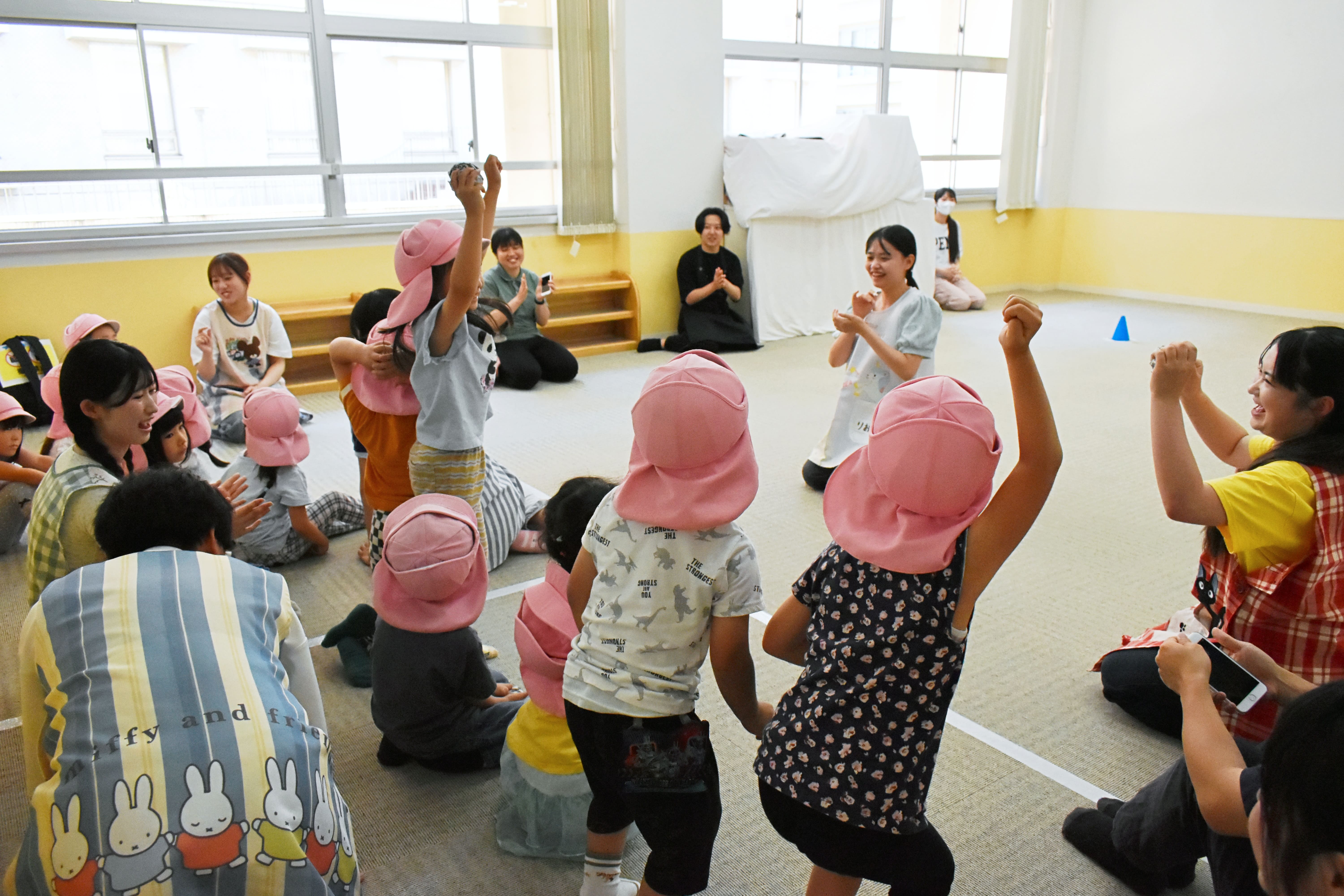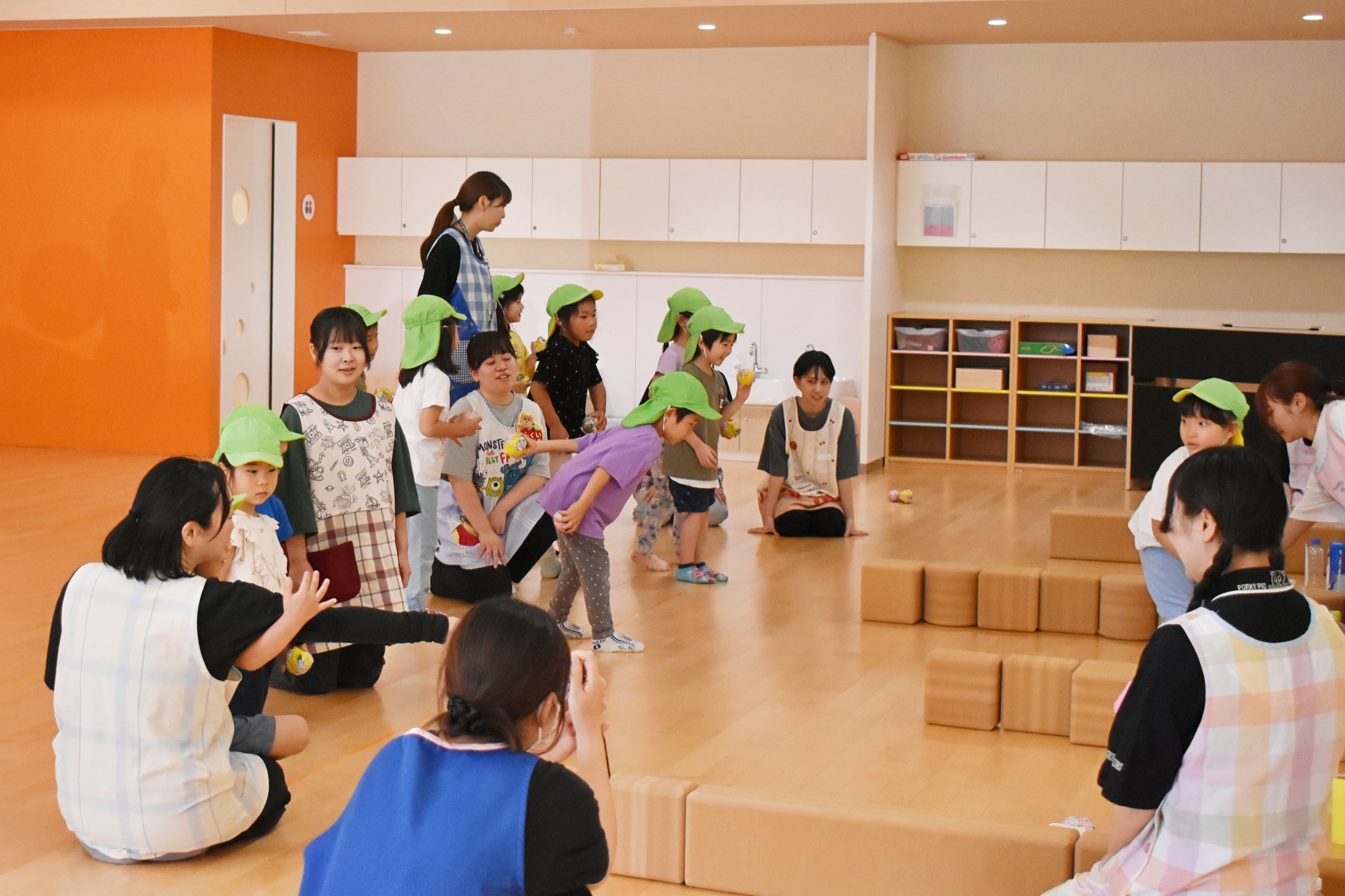 学生はグループで指導計画を立案し、近隣の保育所の子どもたちと実際に活動を行うことで、指導の実践力を養います。