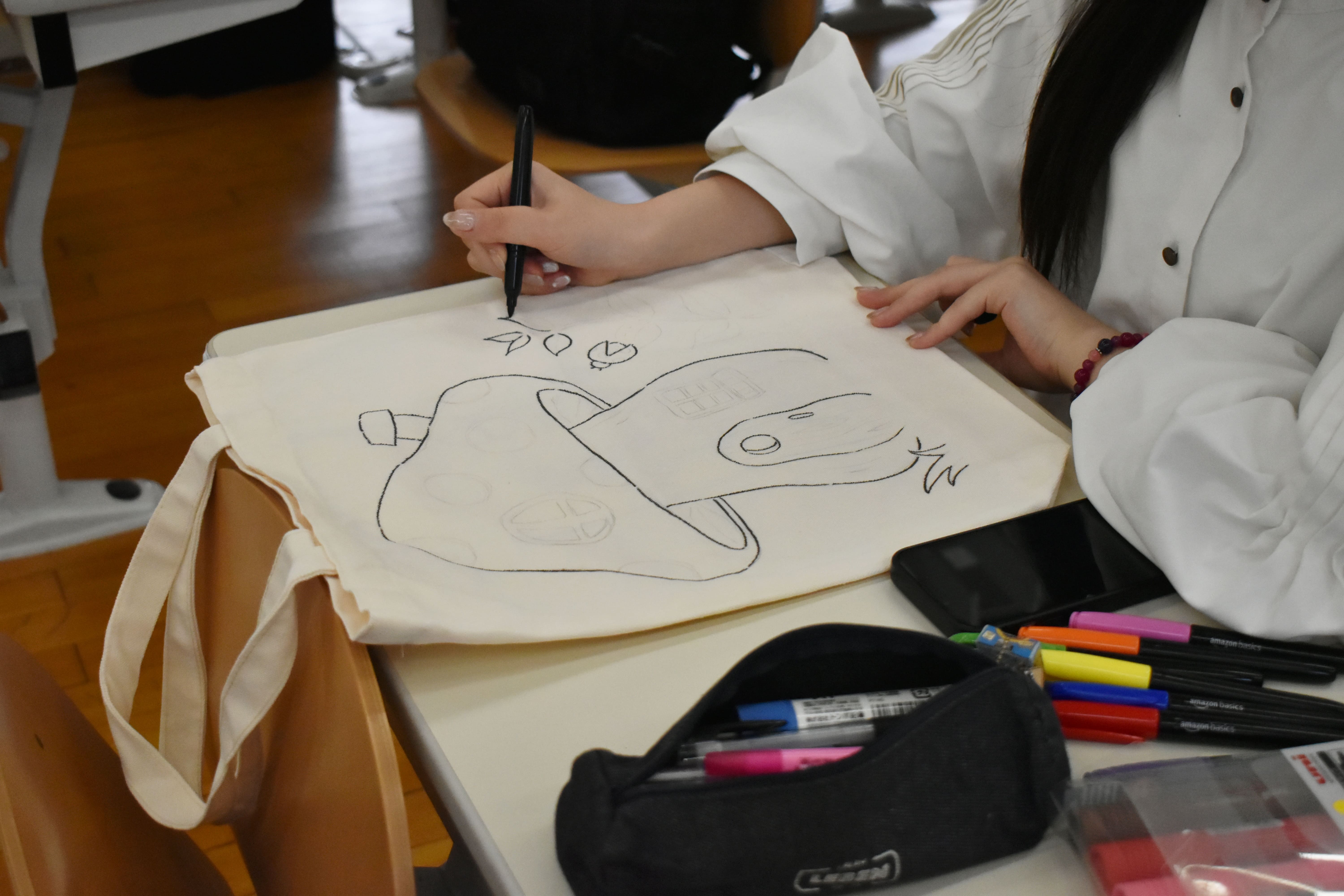 実際に遊びで使うイラストや、子どもたちへのプレゼント用のバッグなども学生の手作りです。