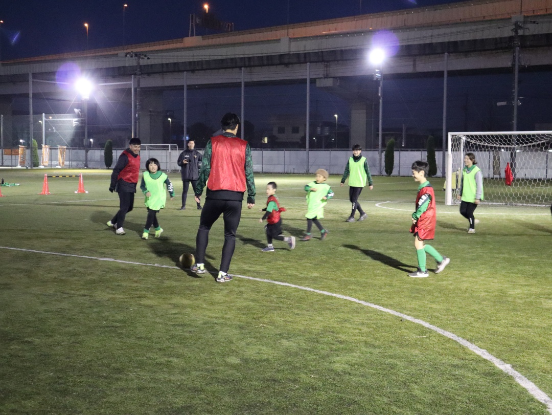 また、本スクールには東京ヴェルディの現役選手2名(佐古 真礼選手、熊取谷 一星選手)も参加し、実際のプレーを交えながら指導にあたりました。